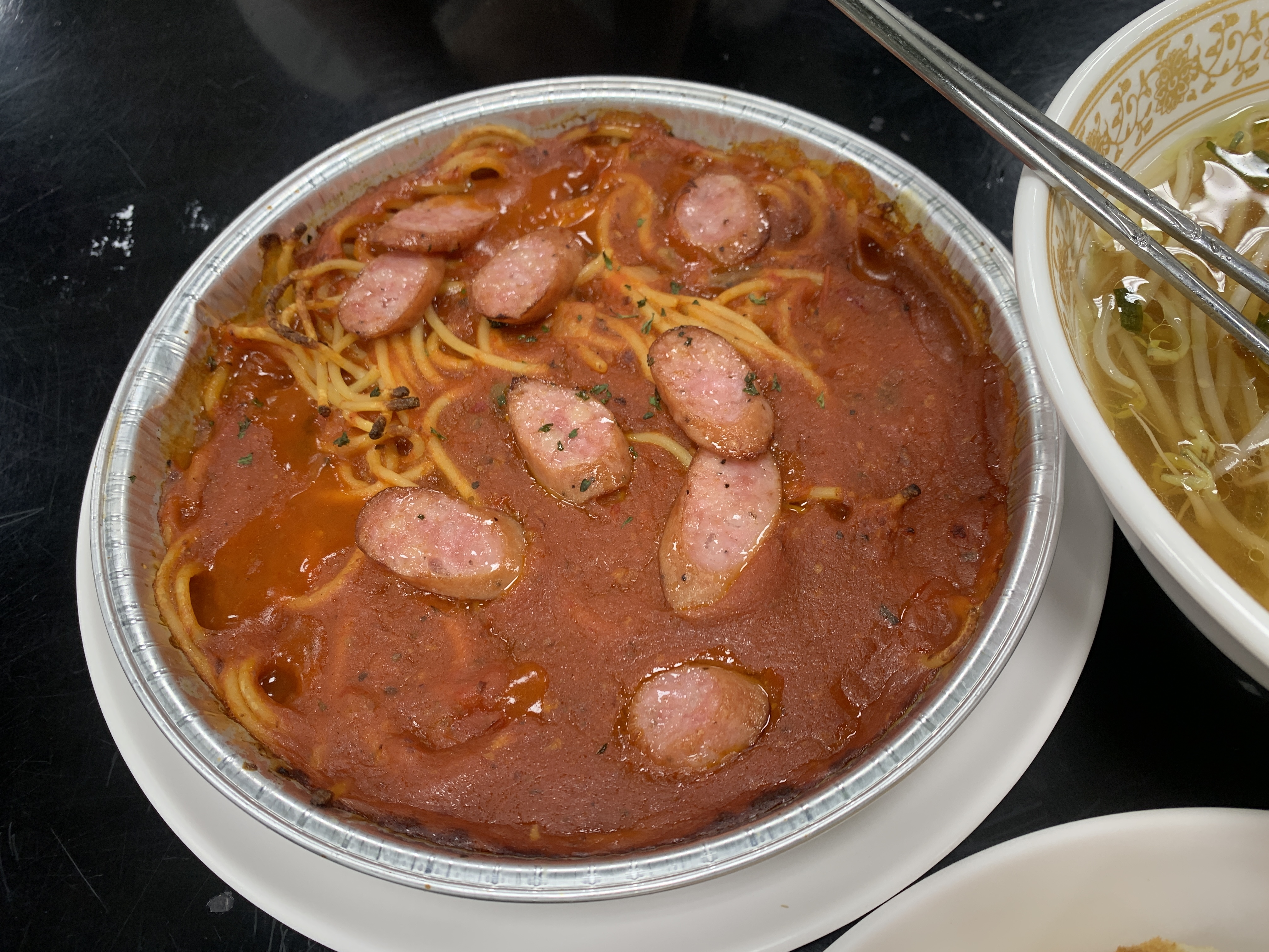 소시지가 올려진 나폴리탄 파스타