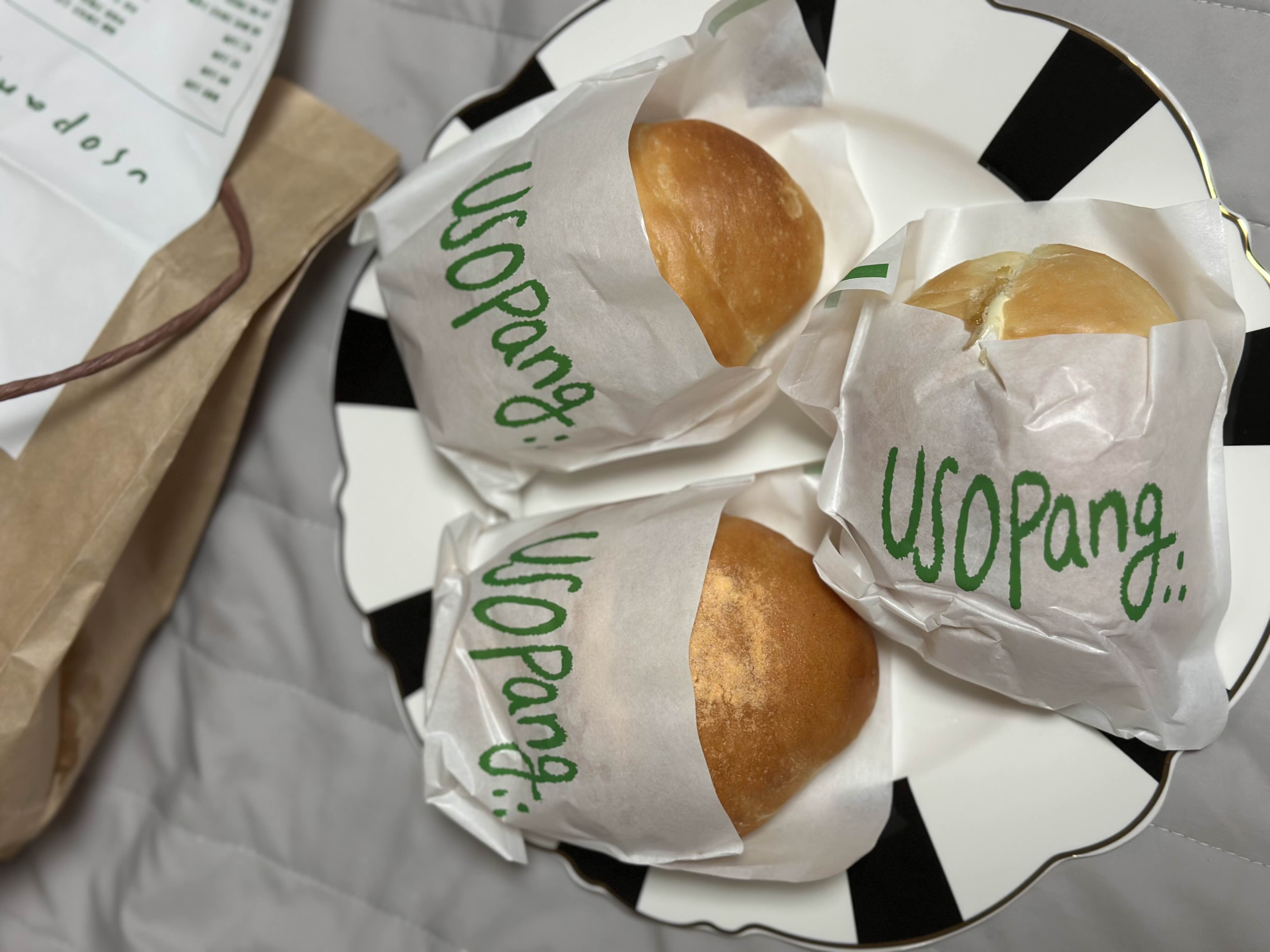빵봉지에 초록색 우소빵 글자가